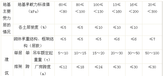 注:①地基主要受力層系指條形基礎底面下深度為3b(b為基礎底面寬度),獨立基礎下為1.5b,厚度均不小于5m的范圍(二層以下的民用建筑于除外)。