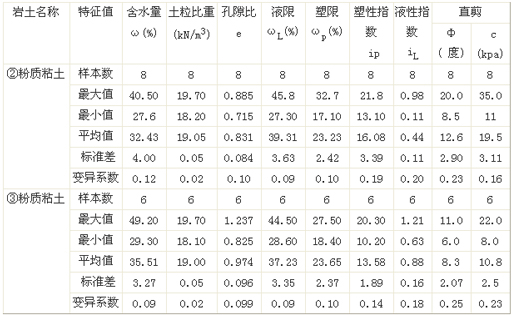地基土參數分別根據土工試驗、靜力觸探測試、標準貫入試驗(N)等方法統計計算,依據《建筑地基基礎設計規范》(GB50007-2002)及湖北省《建筑地基基礎技術規范》(DB42/242-2003)的各種表格等進行查表求得。其中①層雜填土結構松散,軟硬不均,不宜利用,故未提供相關參數;②層、③層粉質粘土和④層粉砂夾粉土、⑤層細砂主要依據室內土工試驗、標準貫入試驗及靜力觸探測試資料分別統計、計算,查表綜合取值。最終確定承載力特征值時,綜合考慮了各單孔土層的均勻程度和力學強度,其精度較高。