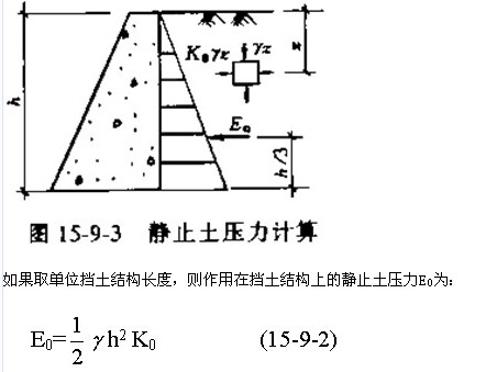由式(15-9-1)可知,靜止土壓力沿?fù)跬两Y(jié)構(gòu)豎向?yàn)槿切畏植迹鐖D15-9-3所示。