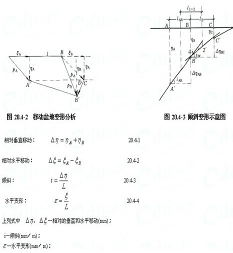 設A、B為主斷面上未移動的兩點,A/、B/為移動終止后的相應位置, 為A、B兩點間的距離,由圖20.4-2可知: