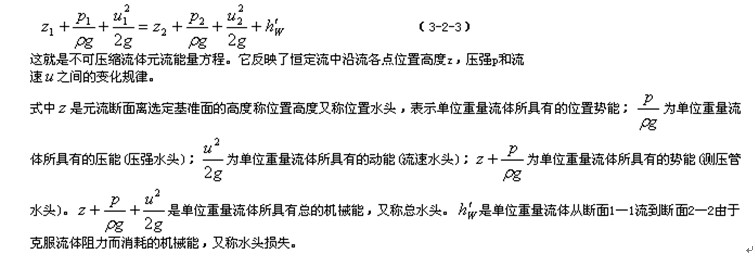 為將元流的能量方程推廣到總流,需利用漸變流的特點。前面流體運動的分類已提到,漸變流中各流線的曲率很小,而且流線間的夾角也很小。也就是說,漸變流中任一點的流速的大小和方向沿流線的變化很小。因此,可以不考慮慣性力,同一過流斷面上各點間的壓差由重力引起,斷面上壓強分布與靜壓強分布規(guī)律相同――直線分布即