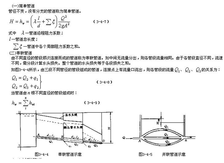 液體充滿整個管道斷面,管壁處處受到液流的壓強作用,此壓強一般不等于大氣壓強,這種流動稱有壓管流。當管流中各運動要素均不隨時間變化,則稱為有壓管道恒定流。其中也包括了不考慮壓縮性的氣體在管道中的恒定流動。有壓管道恒定流的水力計算主要是確定管道中通過的流量;確定相應的水頭;確定某斷面的壓強或壓強沿管線的變化。