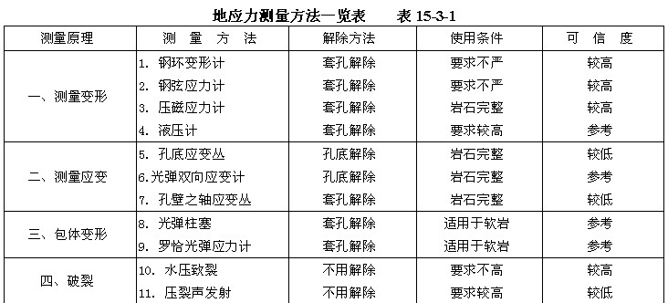 目前已經形成了許多地應力測量方法,這些方法在有關的文獻中已做了詳細的介紹,概括起來如表15-3-1。