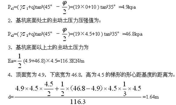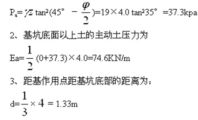 【解析】1、基坑底面處土的主動土壓力壓強值為: