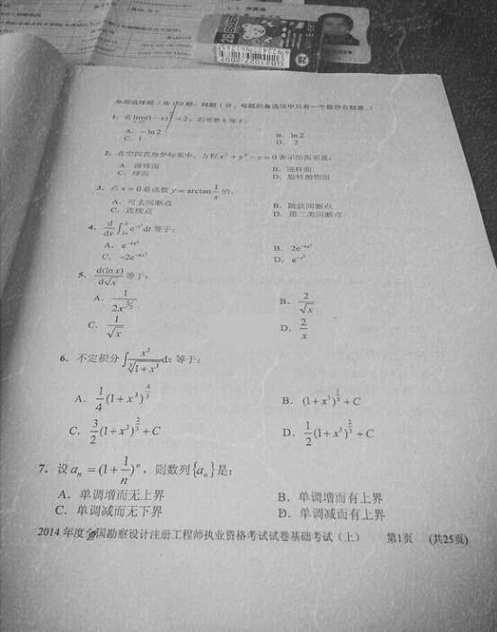 2014年巖土工程師公共基礎考試真題1
