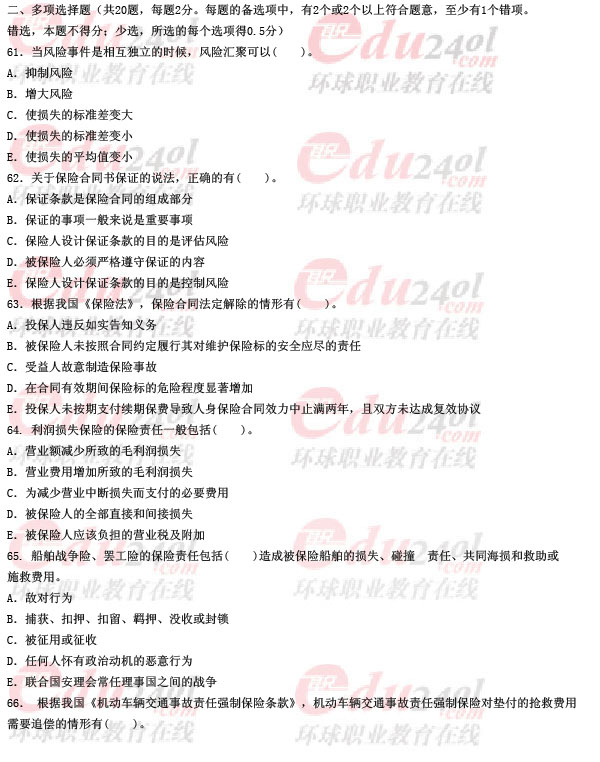 2011年經(jīng)濟(jì)師考試《中級(jí)保險(xiǎn)》真題及答案(4)