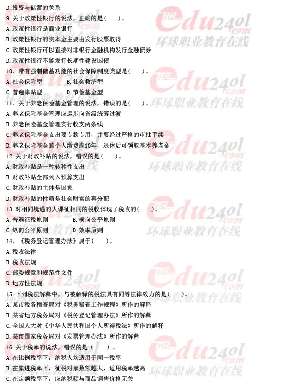 2011年經濟師考試《中級財政稅收》真題及答案(2)