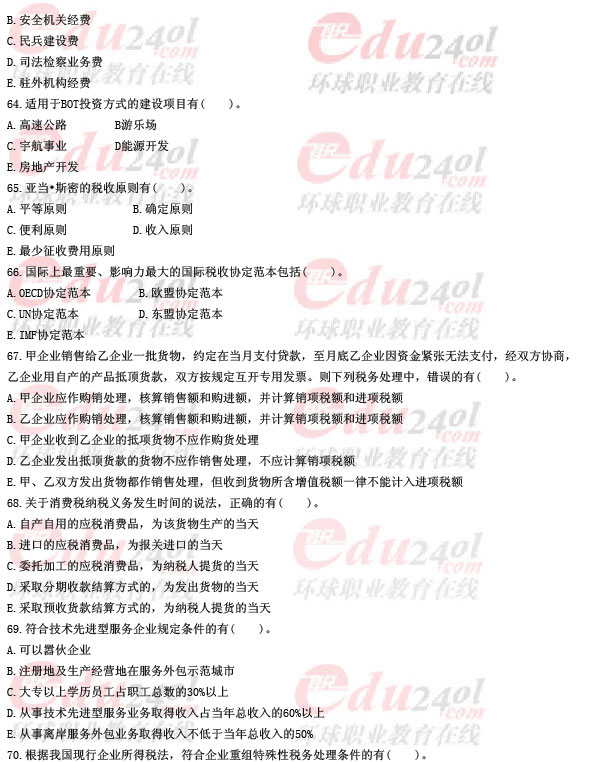 2011年經濟師考試《中級財政稅收》真題及答案(5)