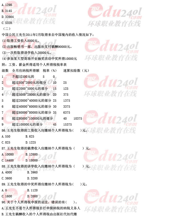 2011年經(jīng)濟(jì)師考試《中級(jí)財(cái)政稅收》真題及答案(7)