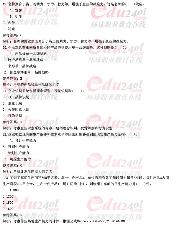 2011年經(jīng)濟(jì)師考試《中級工商》真題及答案(5)