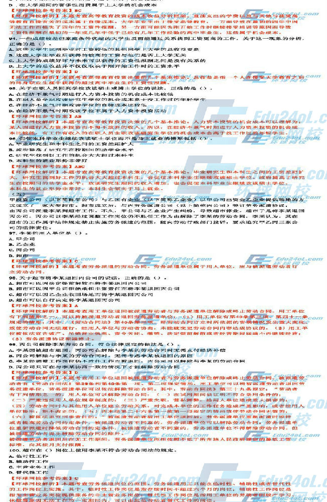 2014年經濟師考試《中級人力》真題及答案解析89-100