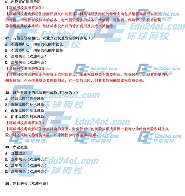 2014年經(jīng)濟(jì)師考試《中級農(nóng)業(yè)》真題及答案解析41-50