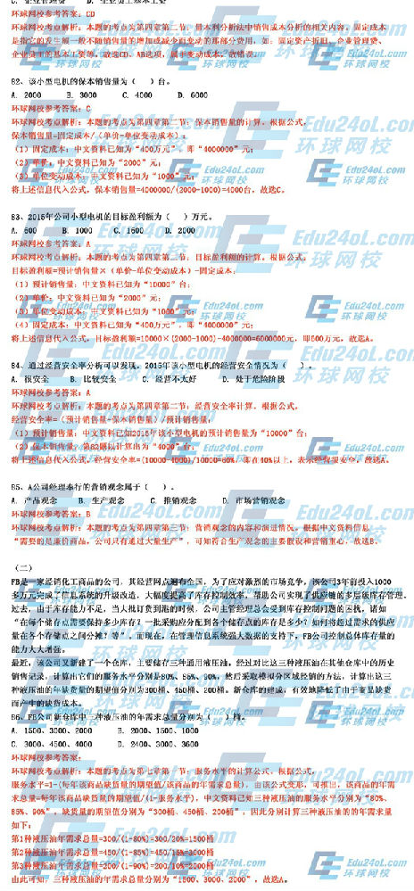 摘要 環球網校2014年中級商業真題答案解析,預祝大家都能順利通過考試