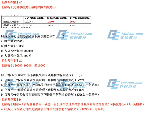90 .X保險公司在交強(qiáng)險項下應(yīng)該賠償乙車( )。