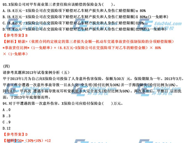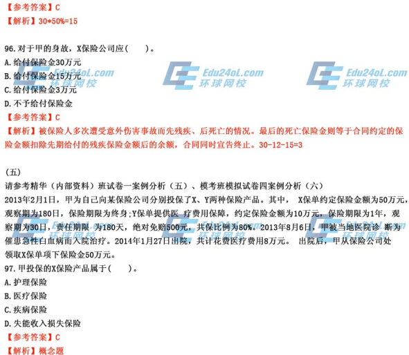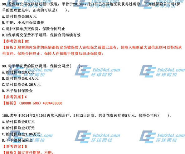 2014年經(jīng)濟(jì)師考試《中級保險》真題及答案解析90-100