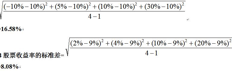 (1)計算A、B兩只股票的期望收益率、標準差以及標準離差率