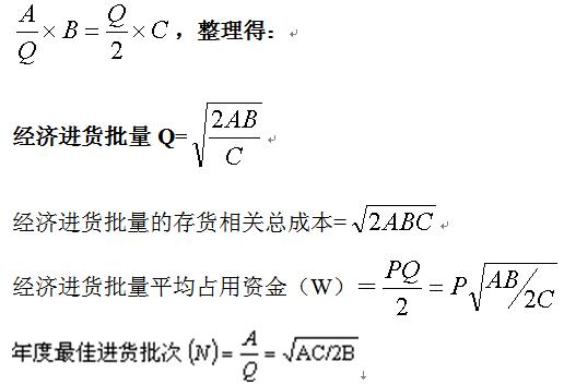 當(dāng)相關(guān)進(jìn)貨費(fèi)用與相關(guān)儲(chǔ)存成本相等時(shí),存貨相關(guān)總成本達(dá)到最低,此時(shí)
