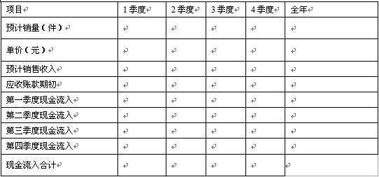 3.某企業(yè)生產(chǎn)和銷售A種產(chǎn)品,計劃期2007年四個季度預(yù)計銷售數(shù)量分別為1000件、1500件、2000件和1800件;A種產(chǎn)品預(yù)計單位售價為100元。假設(shè)每季度銷售收入中,本季度收到現(xiàn)金60%,另外40%要到下季度才能收回,上年末應(yīng)收賬款余額為62000元。