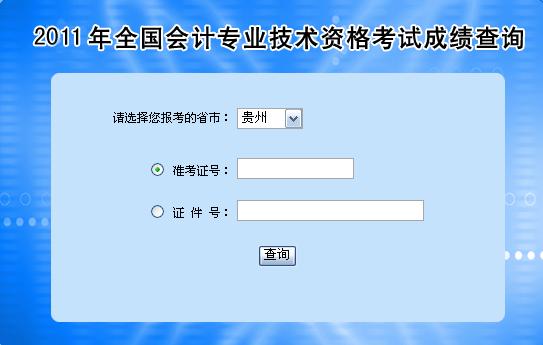 貴州2011年會計職稱考試成績查詢現已開通