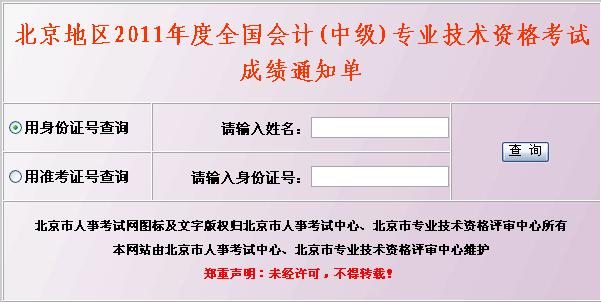 北京2011年會計職稱考試成績查詢現(xiàn)已開通