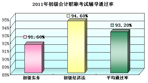 初級會計實務91.6%、初級經濟法基礎94.6%、平均通過率93.2%