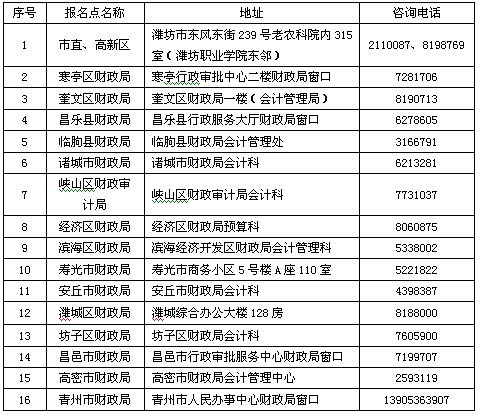 濰坊考區(qū)2012年會(huì)計(jì)職稱考試報(bào)名地址及電話
