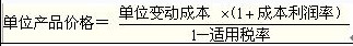 價格×(1-稅率)=單位變動成本+單位利潤=單位變動成本+單位變動成本×成本利潤率