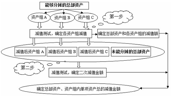 如若減值,按組內單項資產和總部資產分攤額的賬面價值比重分攤減值損失。