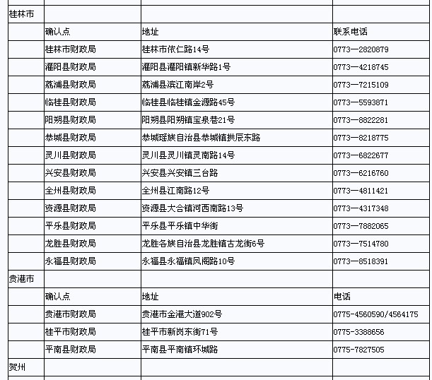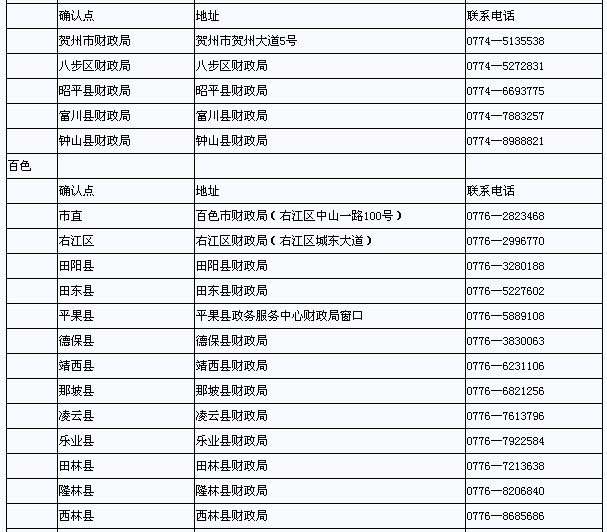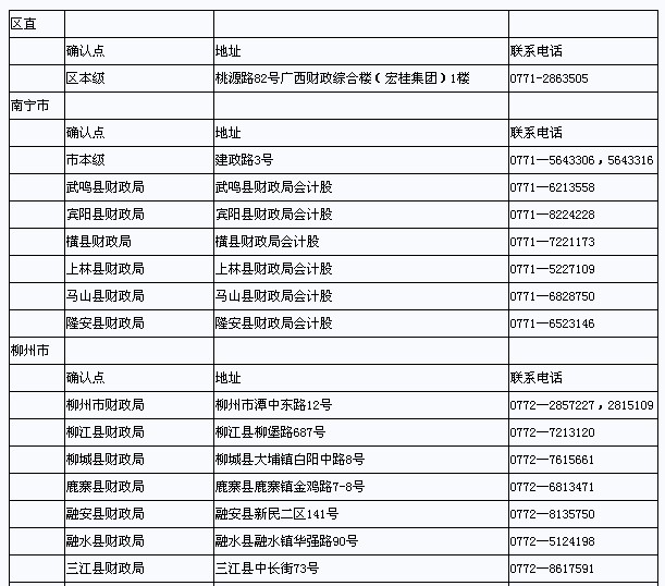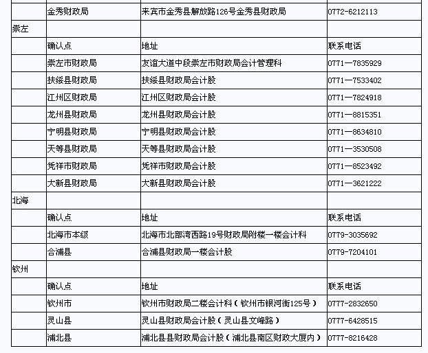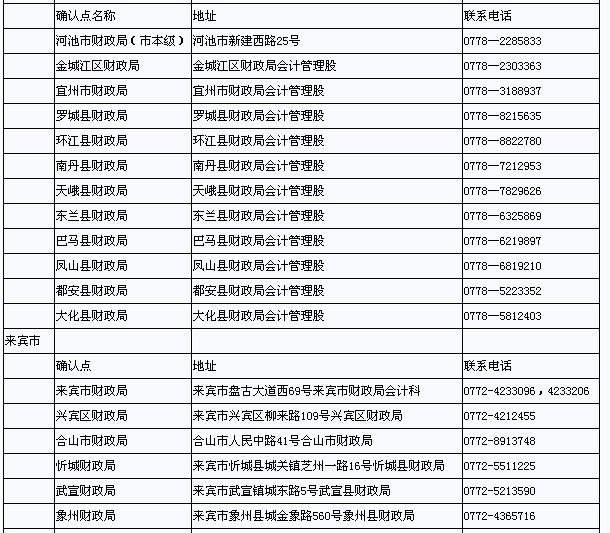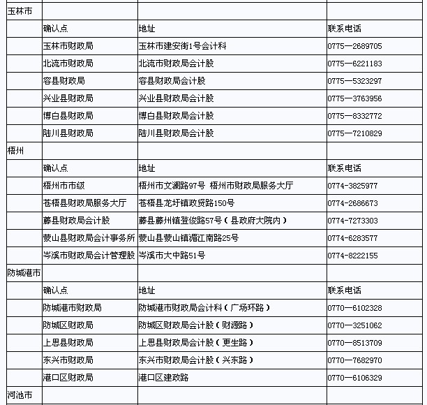 廣西省2013年中級會計職稱考試各地市確認地址和聯系方式