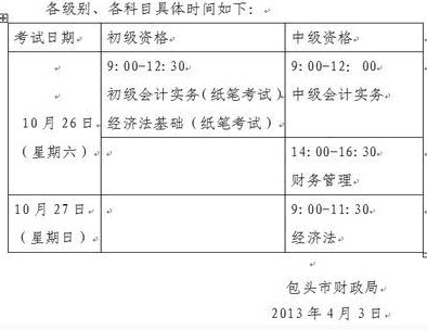 內(nèi)蒙古包頭2013年初級(jí)會(huì)計(jì)師考試報(bào)名時(shí)間4月10日-30日