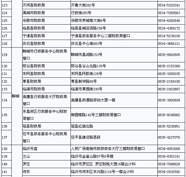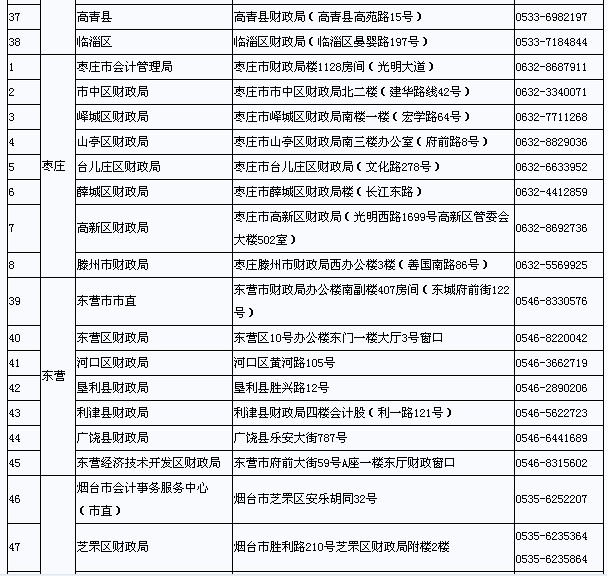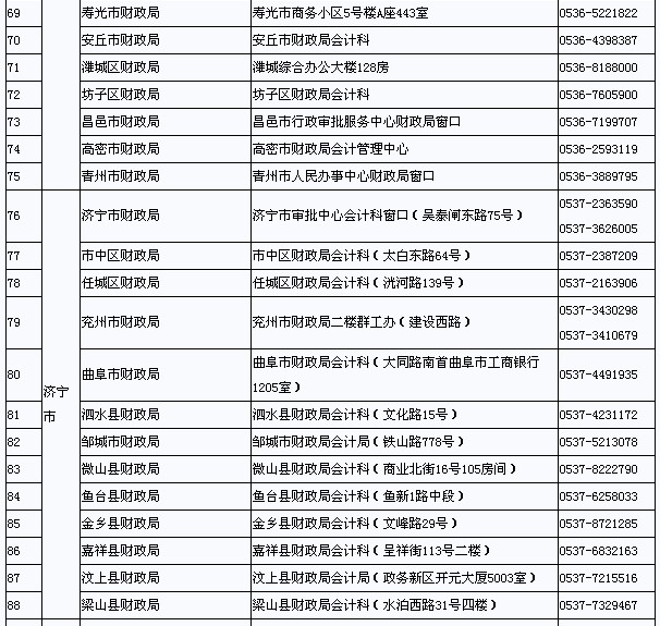 2013年度全國會計專業技術資格考試山東省初級、中級報名點明細表