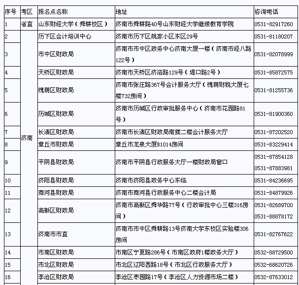 符合報考條件的考生,按照會計從業資格證書屬地原則確認,考生可在本市范圍內任選報名點確認,但不得跨市確認。省直屬管理會計人員統一在省直報名點現場確認。各市于4月13日前將報名點相關信息(名稱、地址、辦公時間、咨詢電話等)報省財政廳,省財政廳將在山東會計信息網公布。