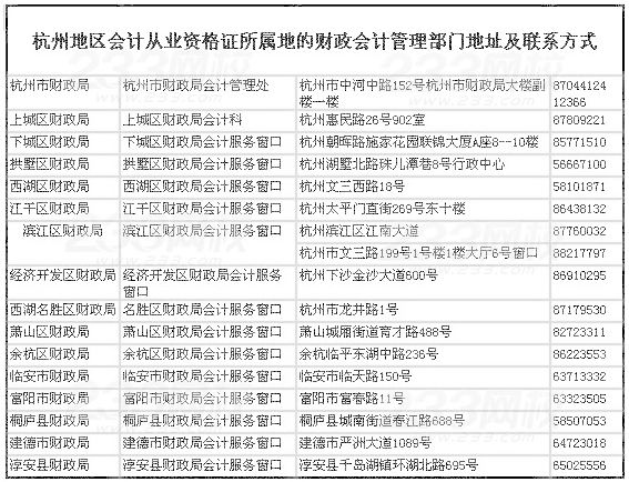 杭州市2012年會計職稱考試證書領取地點及聯系電話