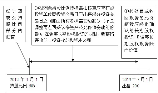對于原取得投資后至因處置投資導致轉變為權益法核算期間應享有被投資單位實現凈損益的份額,一方面應當調整長期股權投資的賬面價值,同時對于原取得投資時至處置投資當期期初被投資單位實現的凈損益(扣除已發放及已宣告發放的現金股利或利潤)中應享有的份額,調整留存收益,對于處置投資當期期初至處置投資日之間被投資單位實現的凈損益中享有的份額,調整當期損益(投資收益);其他原因導致被投資單位所有者權益賬面價值變動中應享有的份額,在調整長期股權投資賬面價值的同時,應當記入“資本公積――其他資本公積”科目。