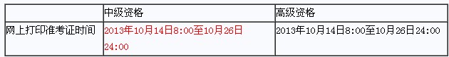 根據《北京市財政局關于2013年度北京市會計專業技術資格考試有關問題的通知》,北京2013年中級會計職稱考試準考證網上打印時間如下: