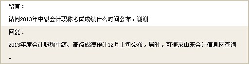 山東省2013年中級會計職稱考試成績查詢時間