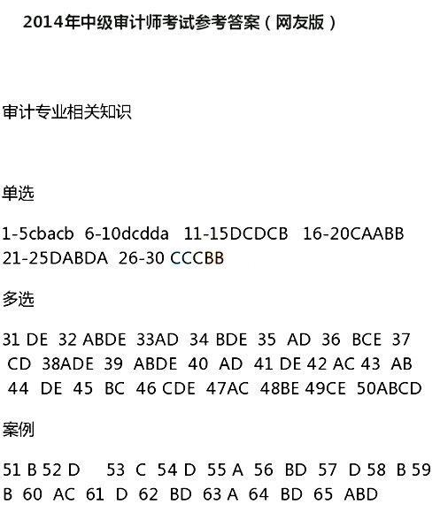 2014中級審計師考試《專業相關知識》答案(網友版)