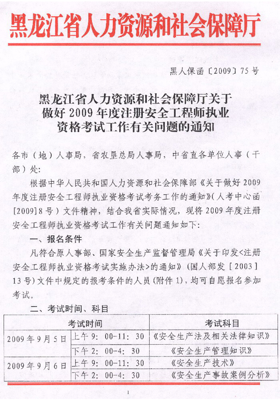 黑龍江關于做好2009年注冊安全工程師執業資格考試考務工作的通知