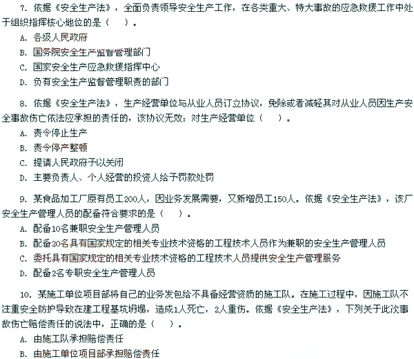2010年度全國注冊安全工程師執業資格考試試卷 $lesson$