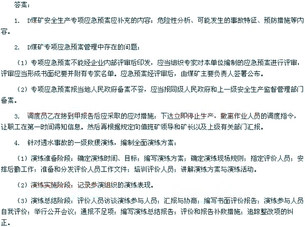 1.說明D煤礦安全生產專項應急預案應補充的內容。