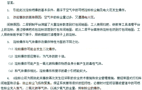 4. 指出G淀粉公司為預防此類事故再次發生應采取的安全技術措施和安全管理措施