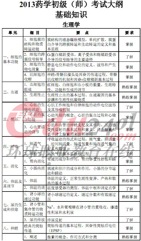 摘要 環球網校整理2013年初級藥師考試基礎知識部分大綱,與舊大綱相比,新大綱有了很大的變化,新增了生物藥劑學與藥動學,具體的知識點也發生了變化。