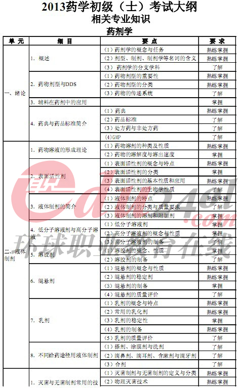 摘要 2013年初級藥士考試報名工作已結束,環球網校搜集整理2013年初級藥士考試相關專業知識大綱,與舊大綱相比,新大綱有了很大的變化,很多知識點發生了變化。
