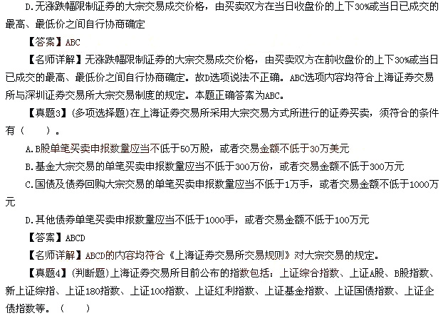 證券從業資格考試證券交易第三章特別交易事項及其監管經典真題回顧