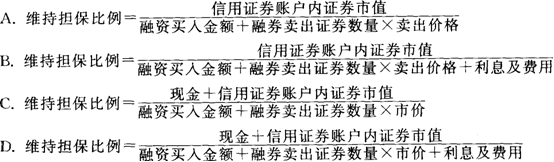 【解析】證券公司應當對客戶提交的擔保物進行整體監控,并計算其維持擔保比例。維持擔保比例的計算公式為:、