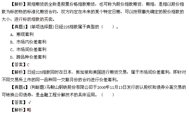 證券從業資格考試證券投資分析第八章金融工程應用分析經典真題回顧