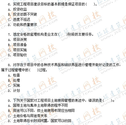 2007年咨詢工程師《工程項目組織與管理》考試真題