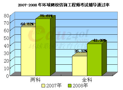 環球網校2008年咨詢工程師考試網上輔導兩科通過率為75.61%,全科通過率為42.38%