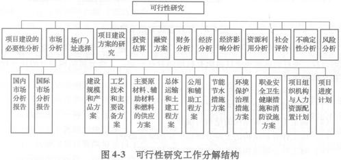 圖4―3為可行性研究的工作分解結(jié)構(gòu)。