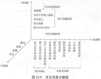 在風險分解過程中,有時并不僅僅是采用一種方法就能達到目的,而需要幾種方法的相互組合,如并列、鑲嵌等。通常采用的組合方式是時間維、目標維和因素維三方面的組合,如圖12—5所示。